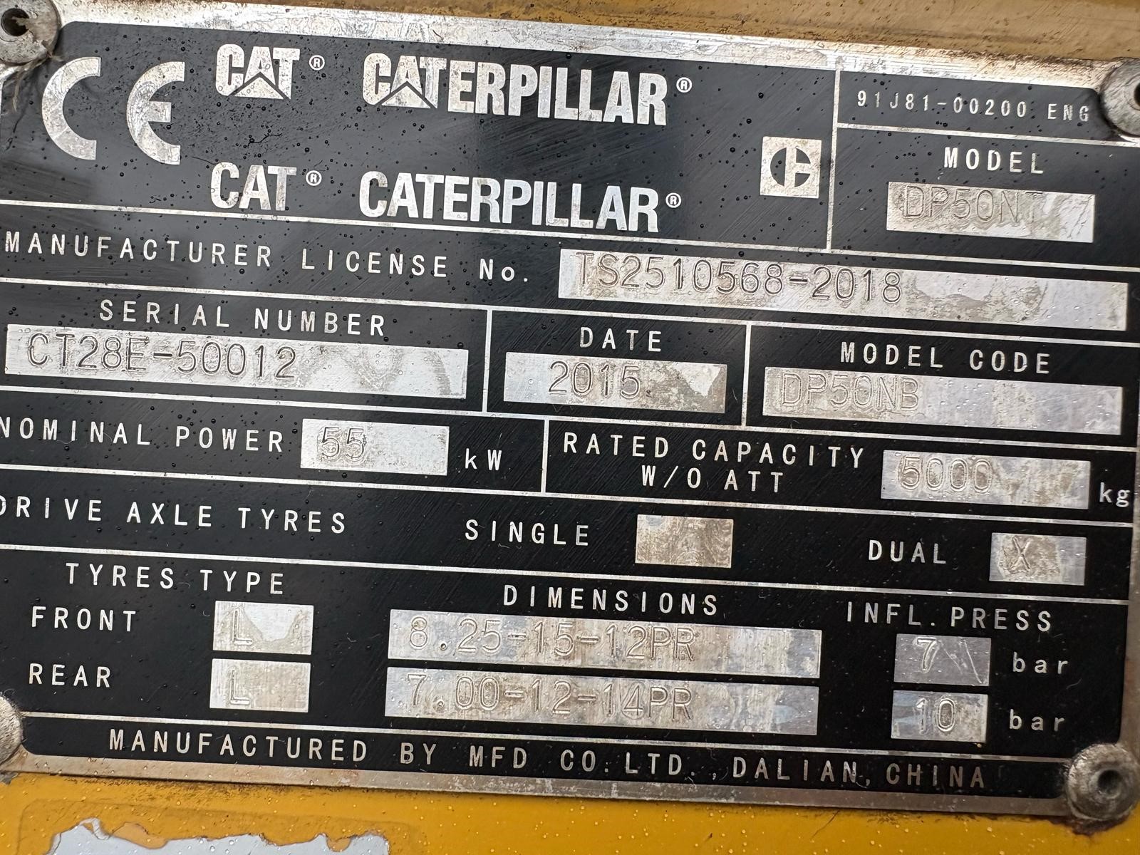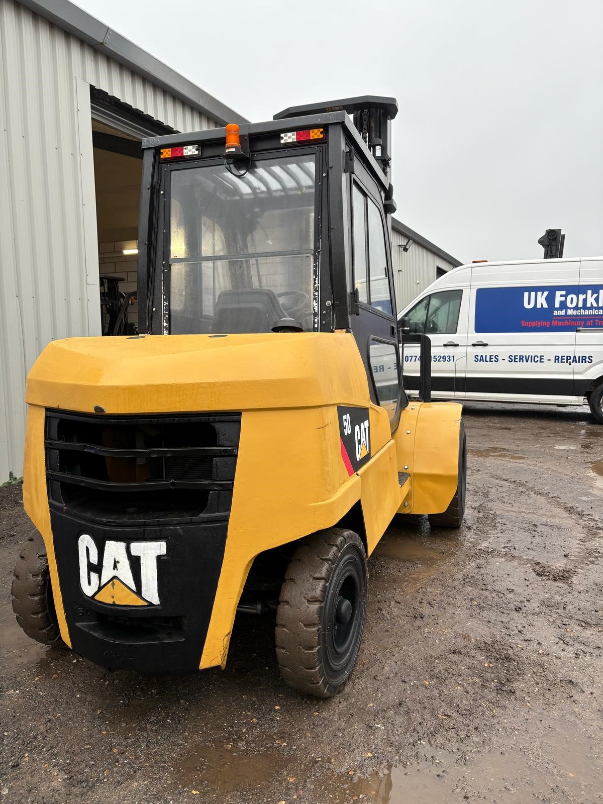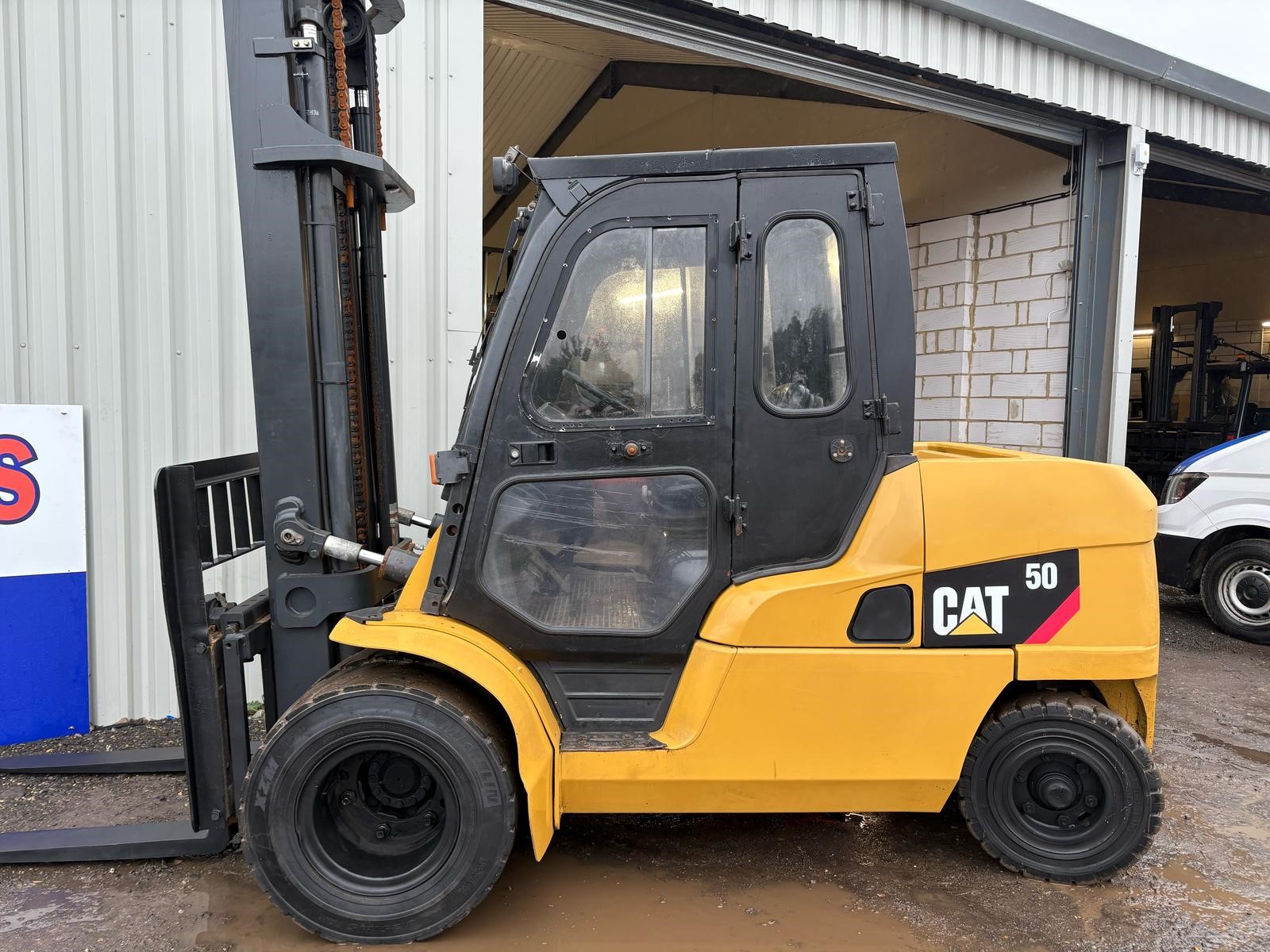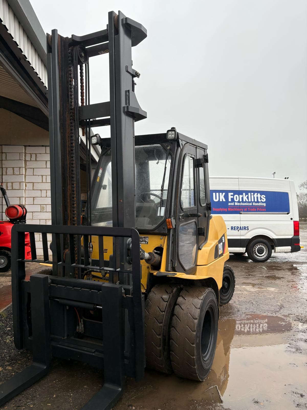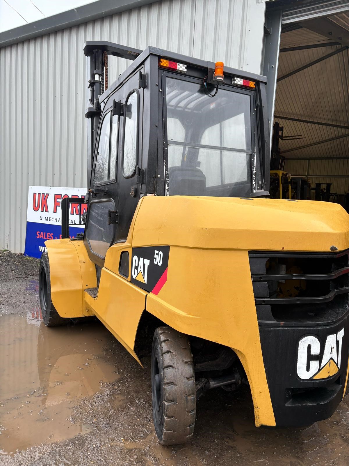 Caterpillar 5 tonne Diesel Forklift, 4.5 metre lift, side shift, full cab, twin front wheels