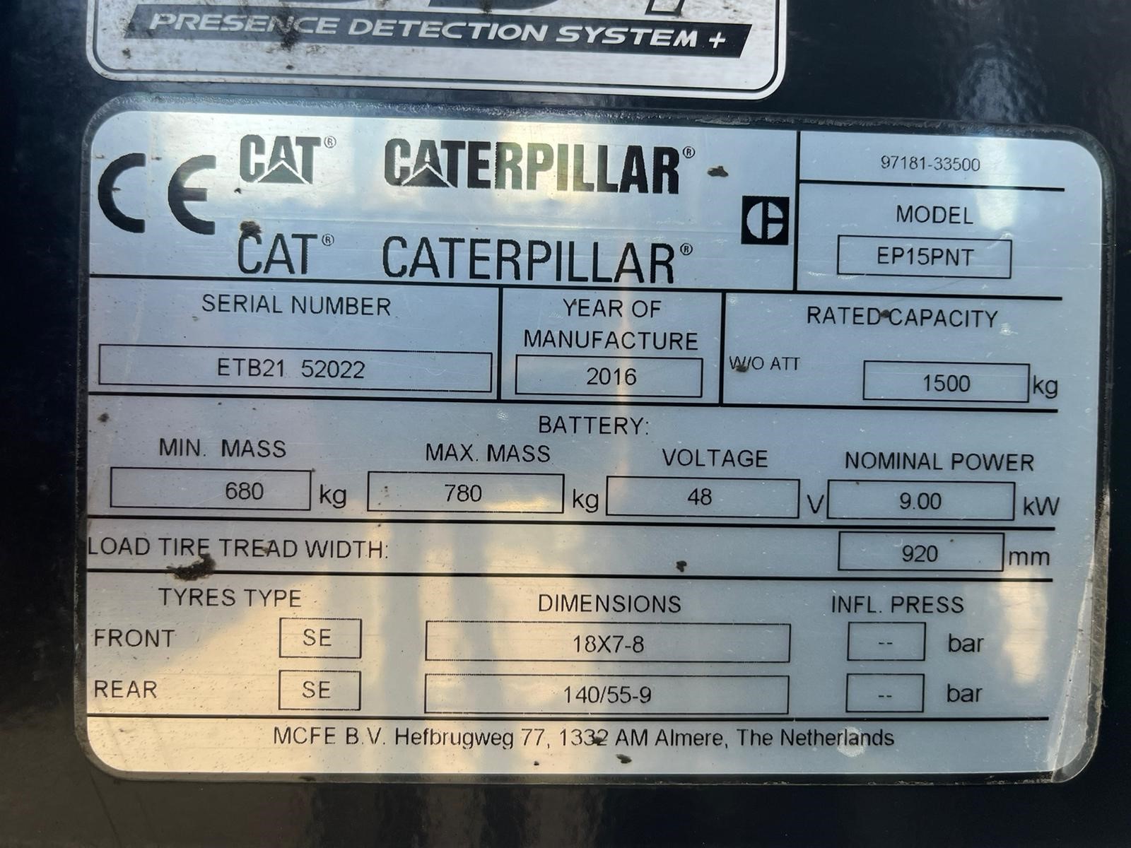 Caterpillar EP15NT - 1.5 Tonne 3W Electric Forklift Truck, 4300mm full free lift, side shift, low hours More electric trucks found here...https://ukforklifts.com/index.php/stock-list-2/electric-forklift-trucks