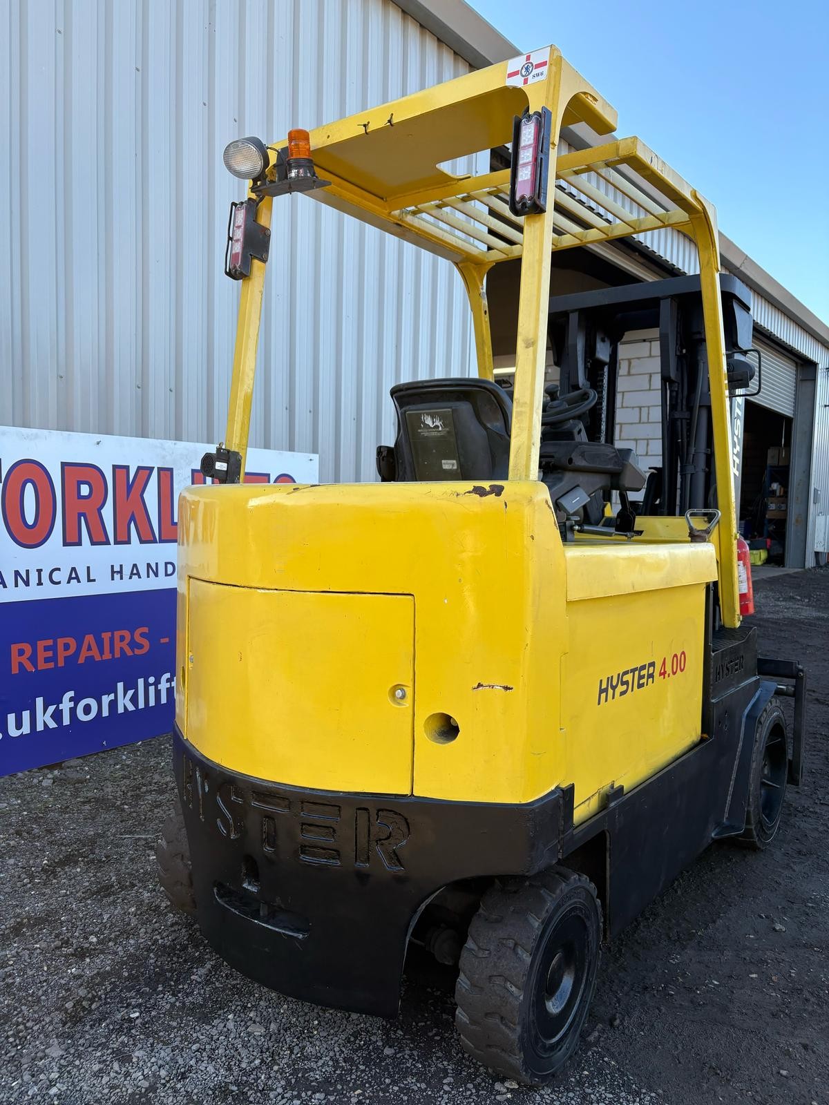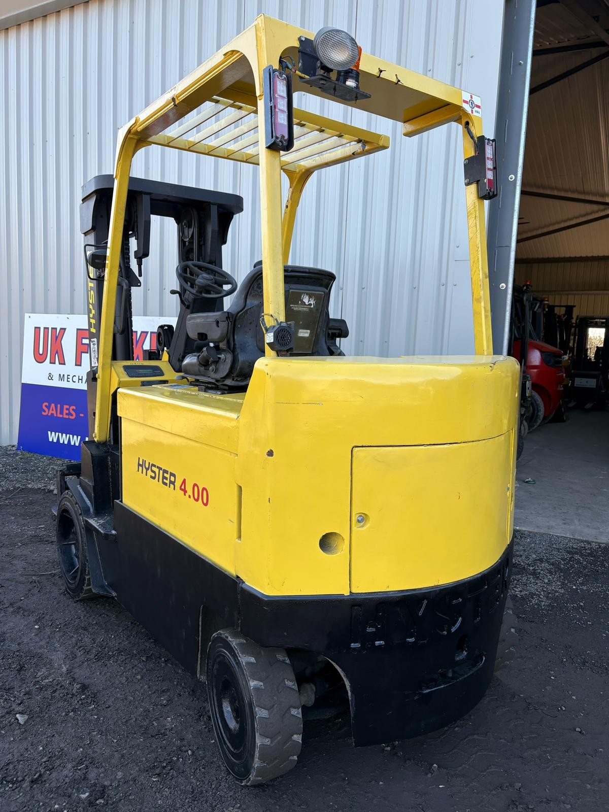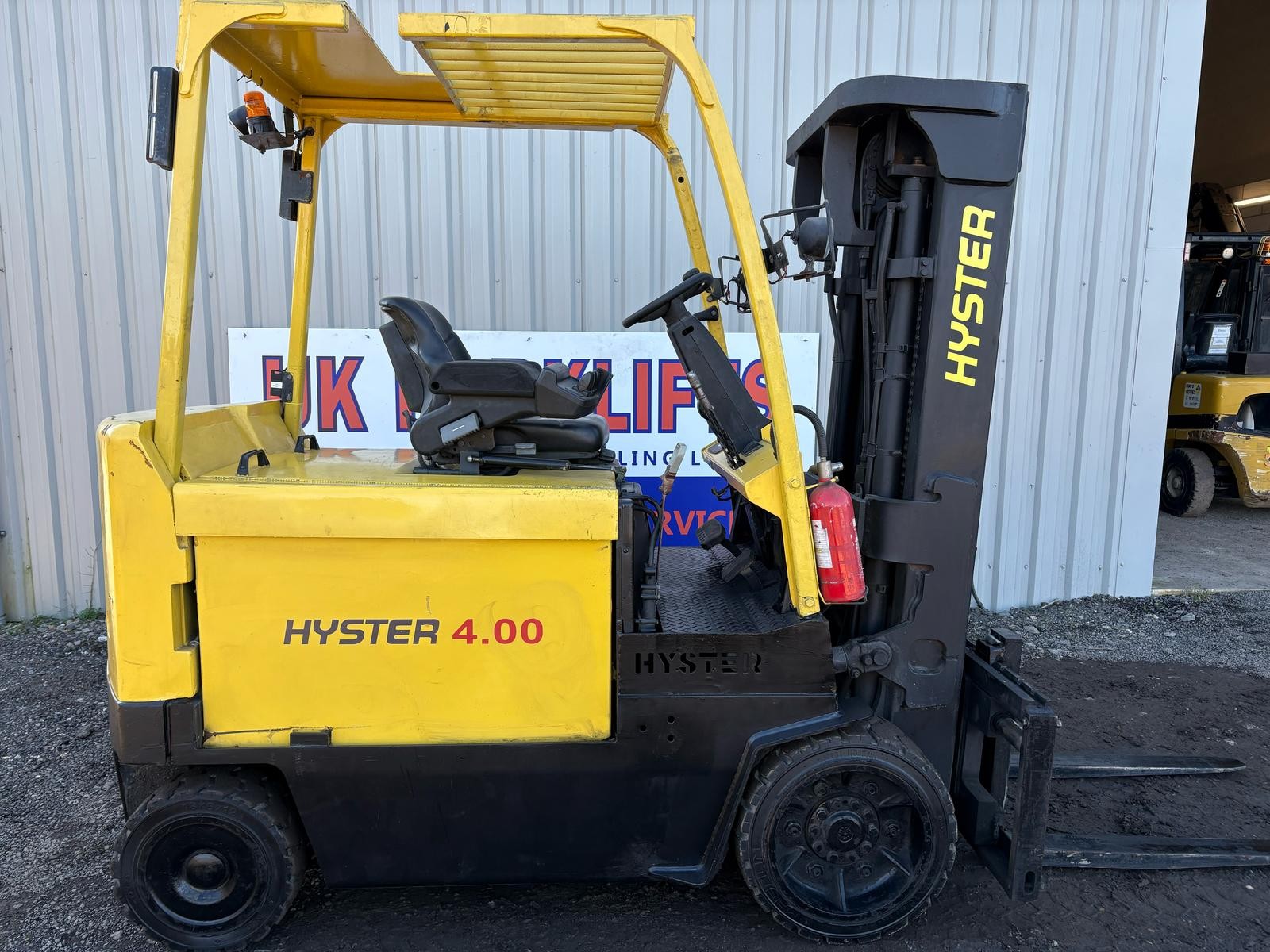 Hyster E4.00XL Very nice and original Hyster 4 tonne electric forklift truck, 4415mm full free lift triple mast, side shift More electric trucks found here...https://ukforklifts.com/index.php/stock-list-2/electric-forklift-trucks