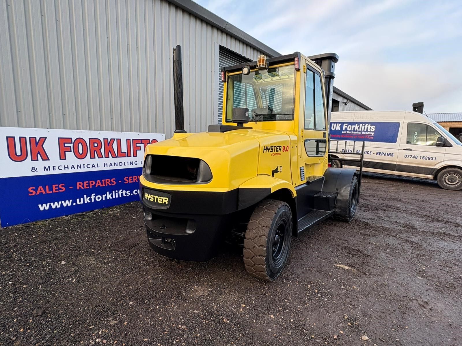 Hyster 9 tonne diesel forklift, 3565mm lift, fork positioner and side shift with very low hours