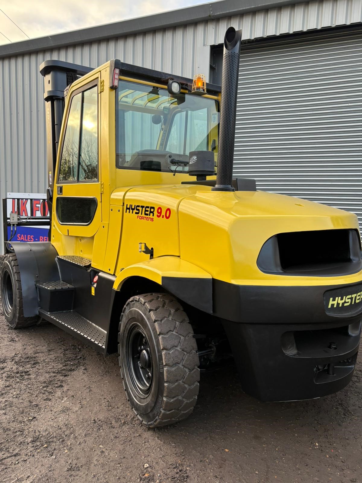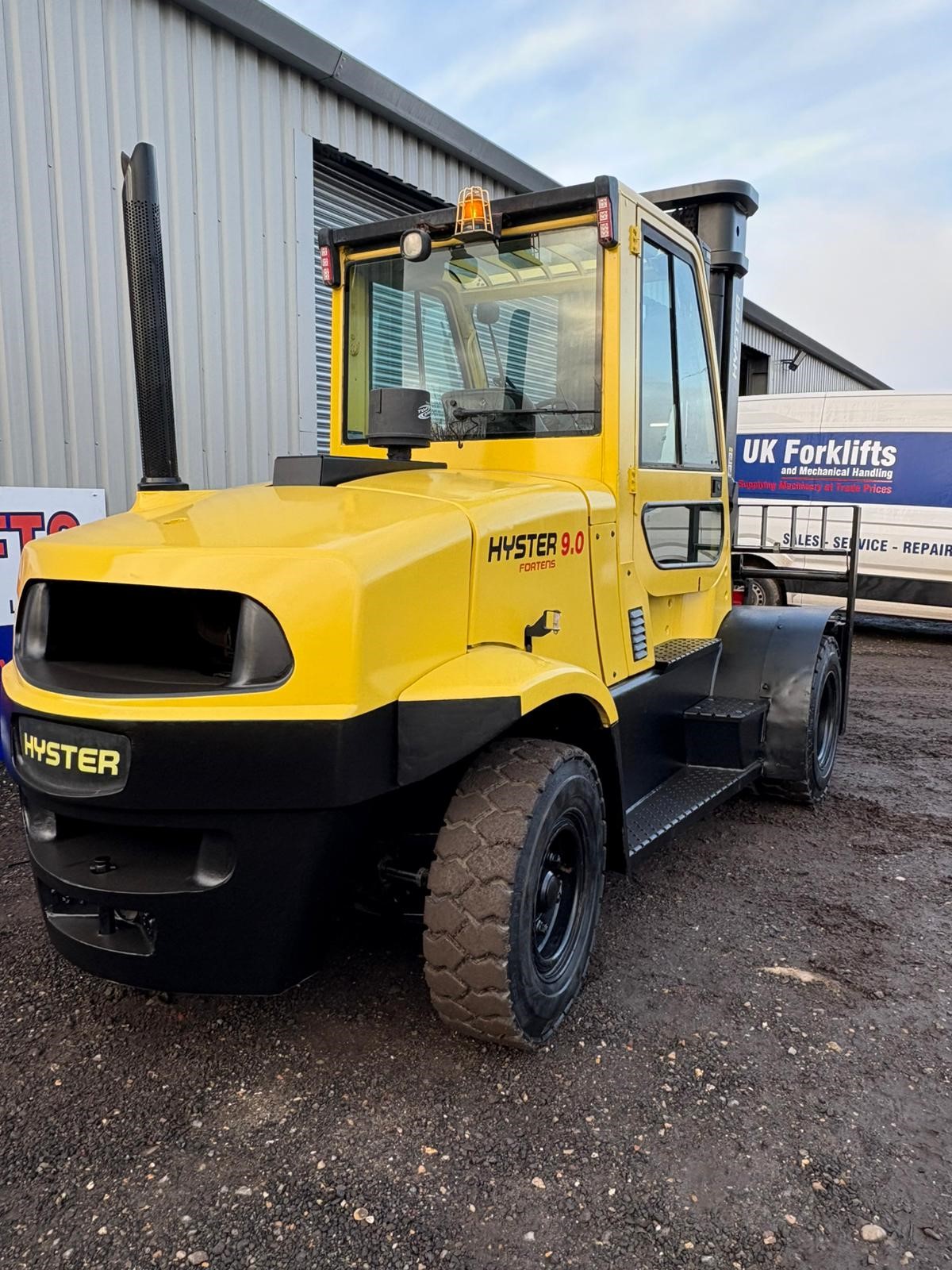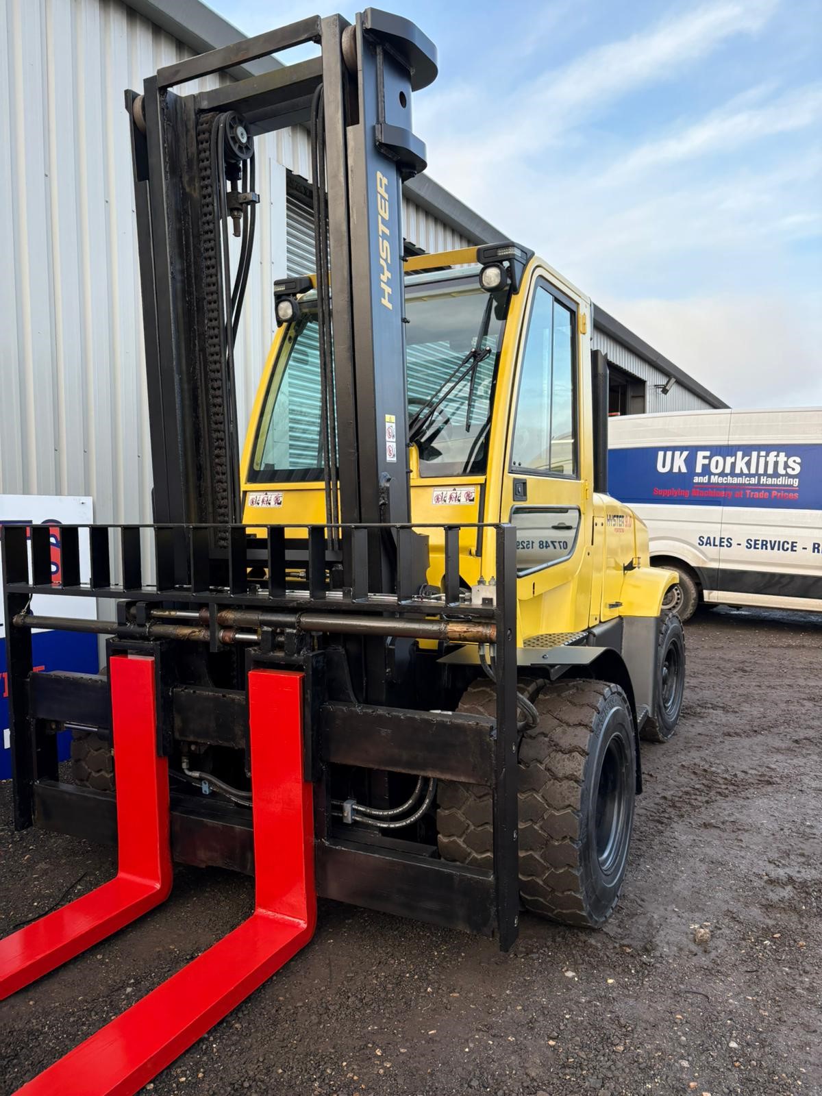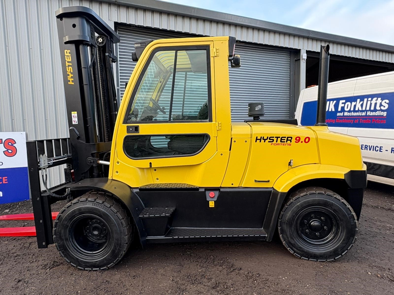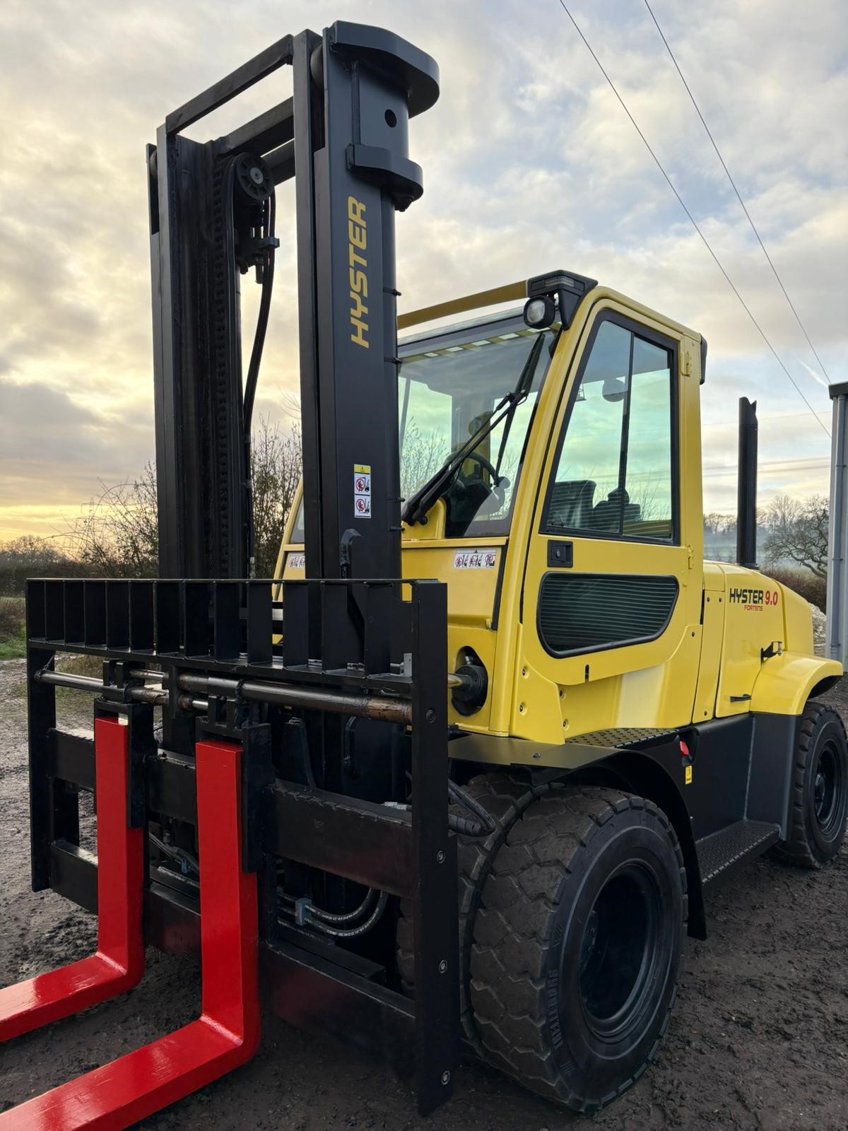 Hyster 9 tonne diesel forklift, 3565mm lift, fork positioner and side shift with very low hours