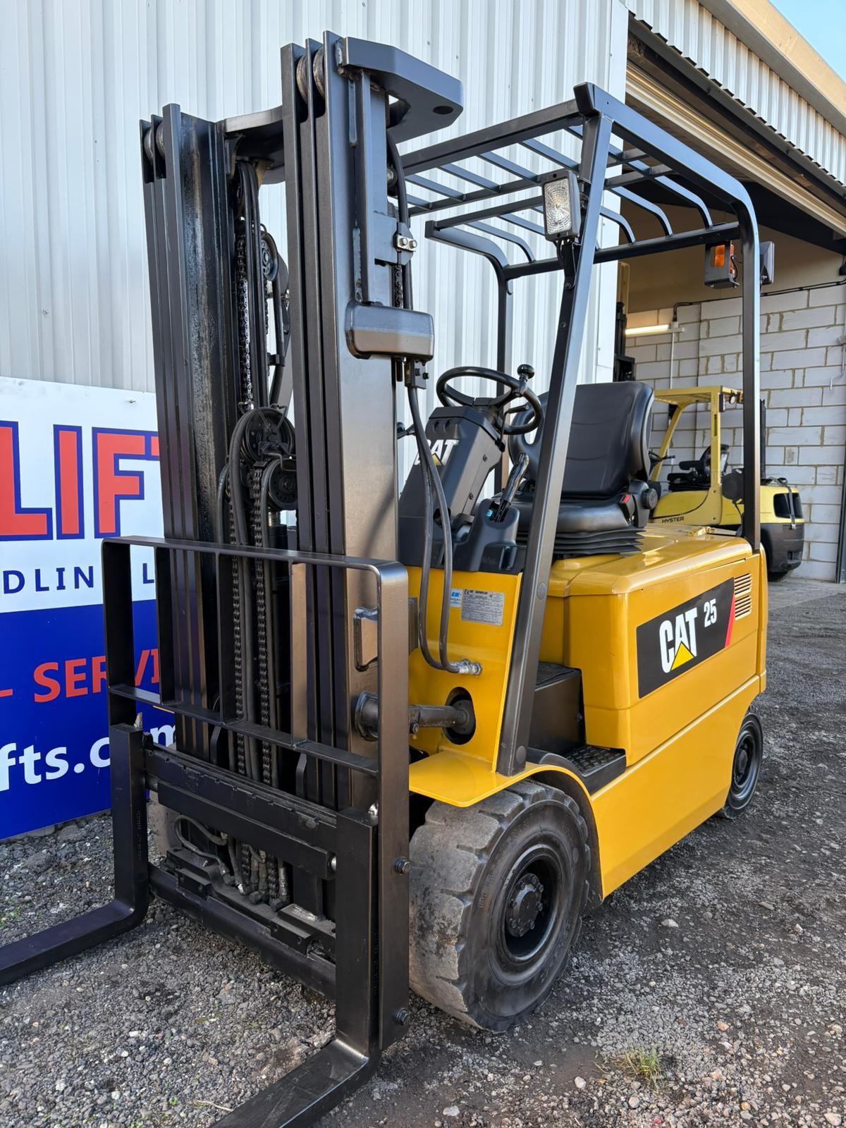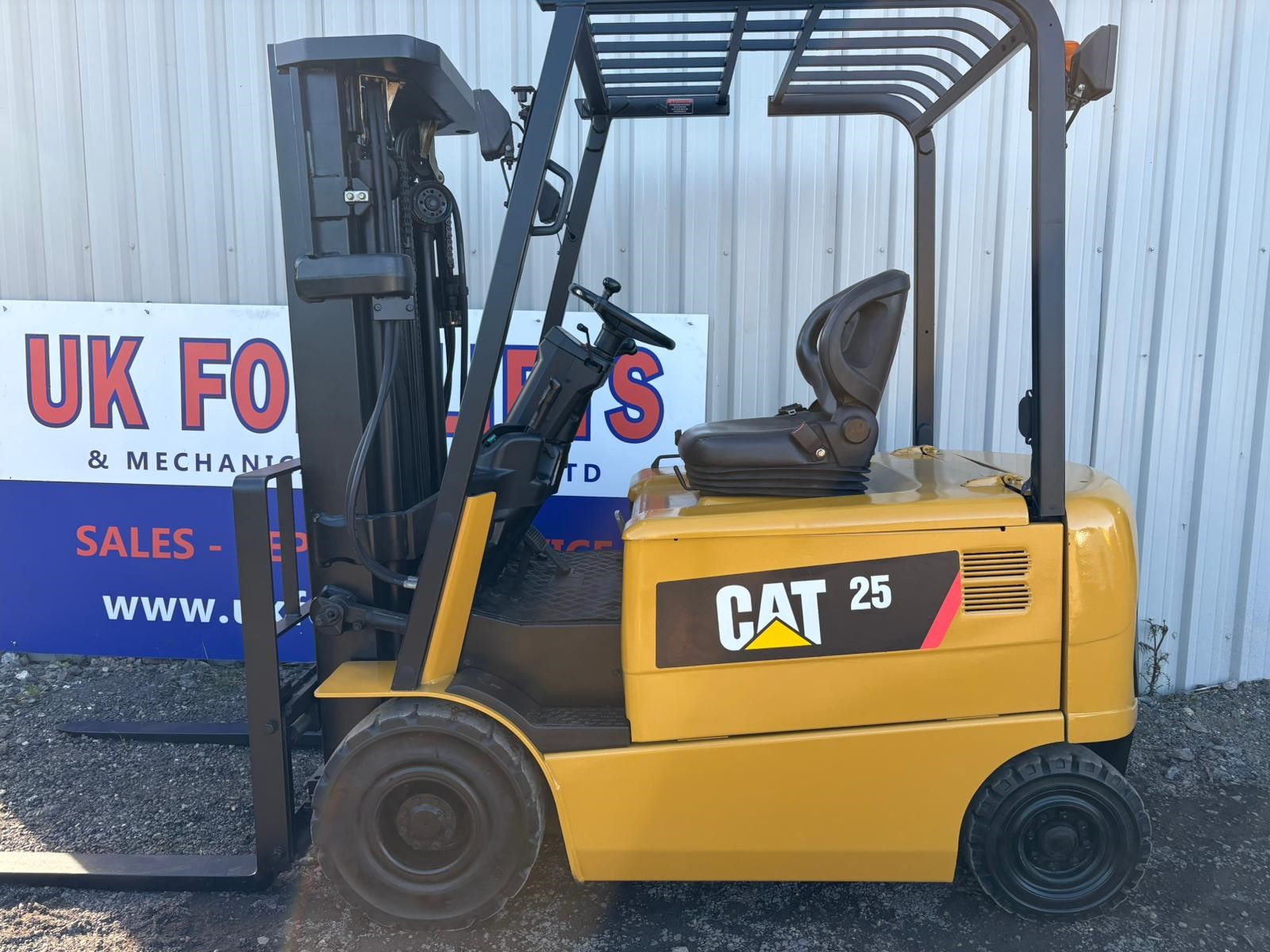 Caterpillar EP25K-PAC - 2.5 tonne electric Forklift, 4700mm full free lift, side shift, low hours More electric trucks found here...https://ukforklifts.com/index.php/stock-list-2/electric-forklift-trucks