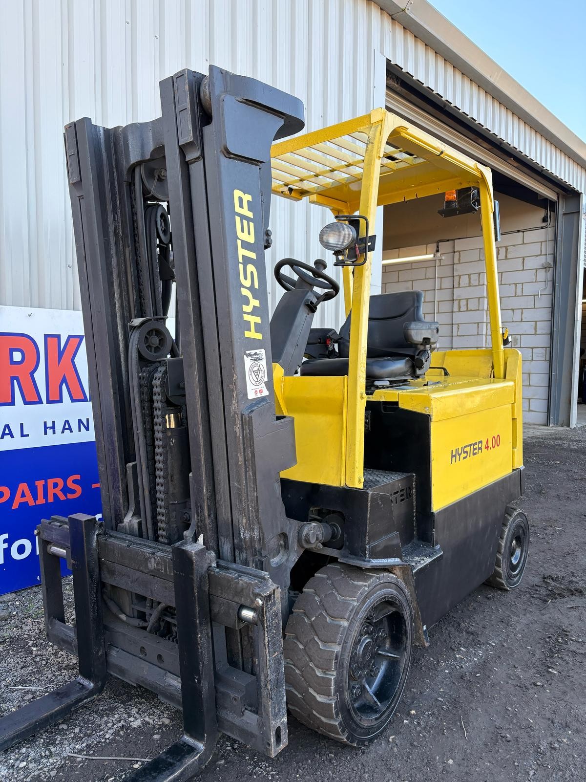 Hyster E4.00XL Very nice and original Hyster 4 tonne electric forklift truck, 4415mm full free lift triple mast, side shift More electric trucks found here...https://ukforklifts.com/index.php/stock-list-2/electric-forklift-trucks